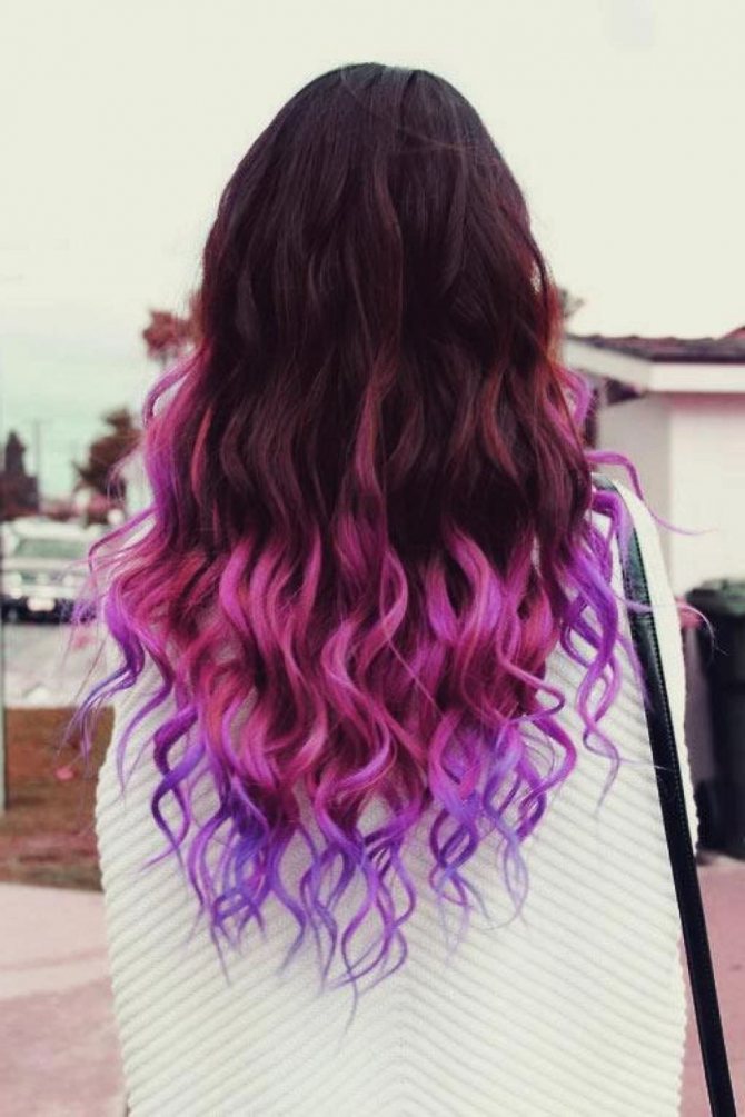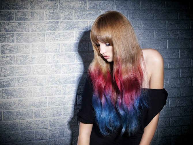 Цветное омбре для длинных волос