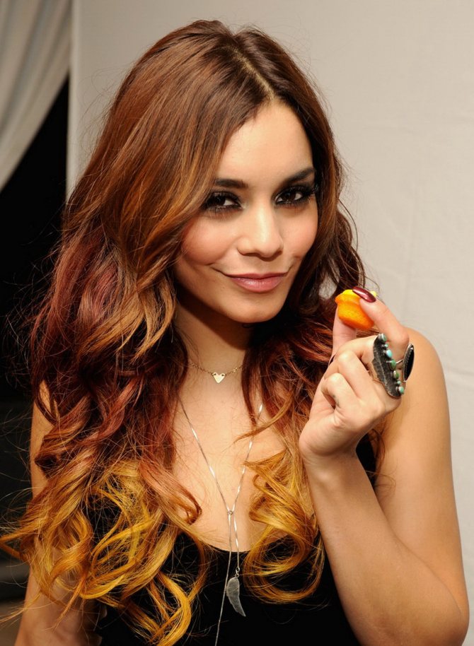 Красно-рыжее омбре – отличный способ сделать собственную гриву ярче, если естественный оттенок слишком невзрачный; обратите внимание, что подобная цветовая гамма подходит тем, у кого теплый или смуглый оттенок кожи, карие или зеленые глаза.