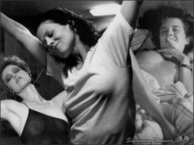 В промежутках между съемками в «Чужих» артистка отвлеклась от роли сильной женщины и сыграла леди в беде. В культовой картине «Охотники за привидениями» Уивер исполнила роль Даны Барретт, девушки, в квартире которой происходят мистические явления.