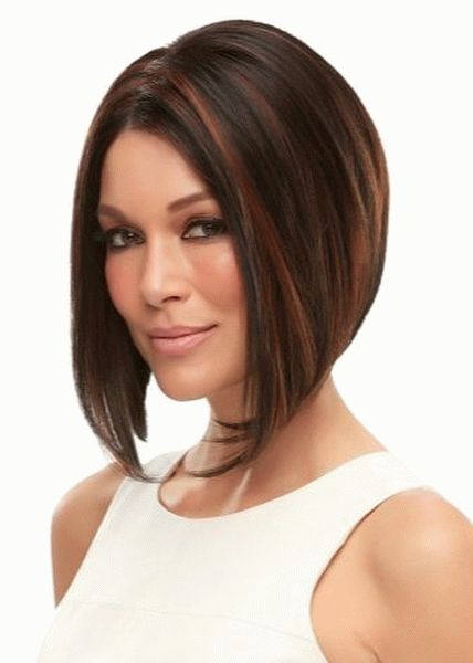Таким девушкам не хватает округлости в нижней части лица, из-за чего оно смотрится тяжеловато. Кроме того, у них обычно довольно широкий лоб. Выигрышно будет смотреться градуировка стрижки боб со слоями, которые начинаются чуть ниже подбородка.