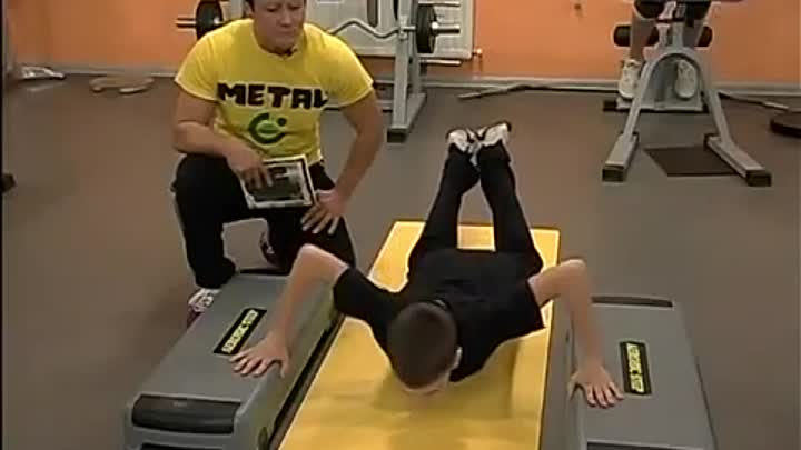 - Основные упражнения- отжимания, подтягивания таза в прыжке вверх, не выходя из упора лежа, подтягивания, выпрыгивания вверх.