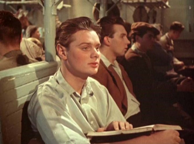 Кадр из советского художественного фильма режиссера Василия Ордынского «Человек родился». В роли Нади Смирновой — артистка Ольга Бган, Виталий — артист Владимир Андреев