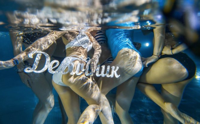Там же можно устроить забавную фотосессию будущей невесты с подружками с огурцами на глазах и масками на лицах, в шерстяных розовых халатах и махровых тапочках. Для этого нужно сделать небольшую фотозону – можно заказать шарики в цвет Вашего девичника, распечатать и развесить забавные фото. Заказав веселый торт – точно не прогадаете. Торт может быть с Вашим общим или просто смешным фото, в свадебной тематике и даже 18+. Пусть этот день запомнится надолго!