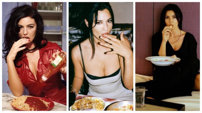 Для фотомодели и актрисы очень важно всегда держать себя в форме. Но постоянные тренировки и отказ от еды слишком изнуряют организм. Моника Беллуччи в молодости и сейчас превосходно выглядит. Ее вес колеблется от 63 кг до 68 кг при росте 178 см. При этом параметры почти идеальны: 92-62-92. Как ей удается всегда поддерживать фигуру? Неужели актриса ничего не ест?