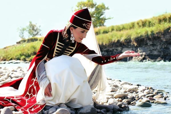 На кавказских свадьбах принято проводить выход невесты к реке, который должен защитить девушку от несчастного случая. Кавказские народы верили, что женщину может утянуть в быструю горную реку водяной, когда она придет набирать воду.