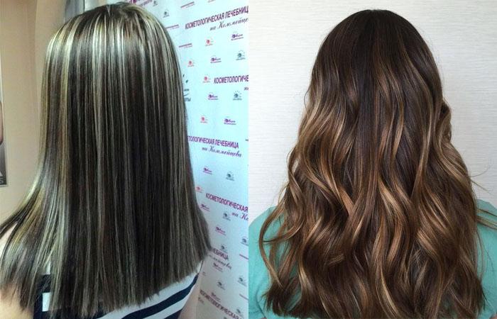 - брондирование на темные волосы;