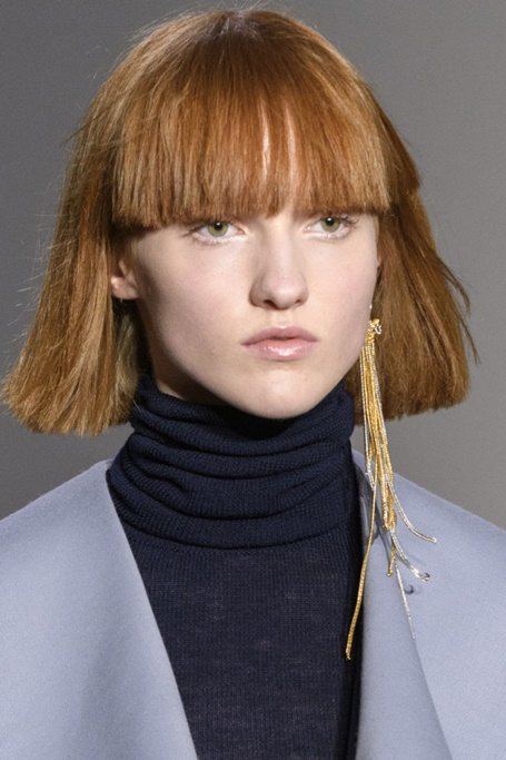 Прямую челку, в новом году, желательно носить на сторону, так часть волос, спадая, слегка скрывая брови. Потому линия челки не должна быть прямой. Эта тенденция внешне заставит выглядеть челку густой и прибавит желаемого объема.