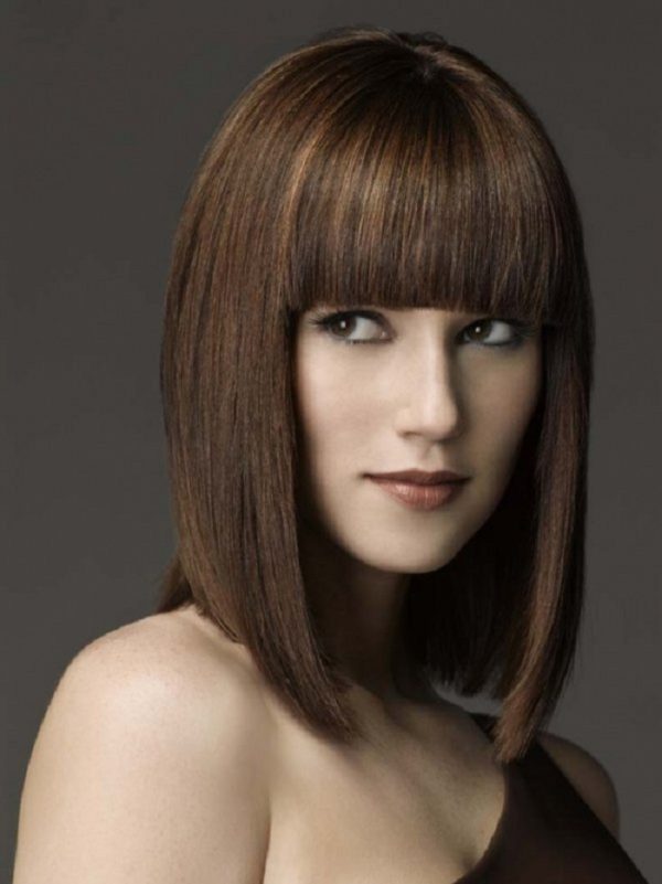 - ровно и коротко остриженная челка не подойдет округлому лицу, поскольку линия четкая и проходящая горизонтально зрительно делает лицо шире.