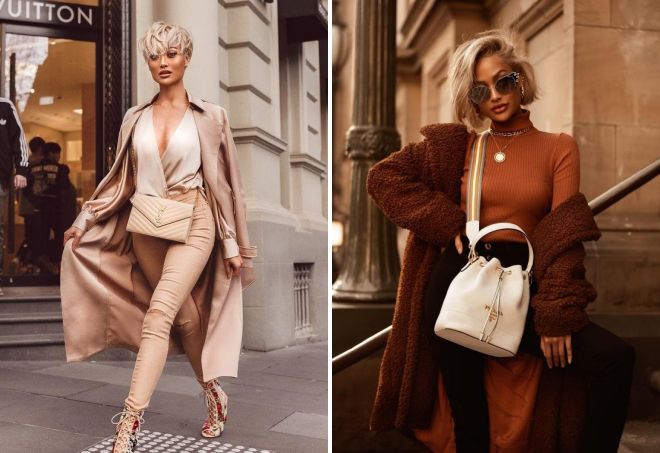 - для раннего сезона можно составить монохромный лук, включающий плащ, шляпу, сапоги или ботильоны;
