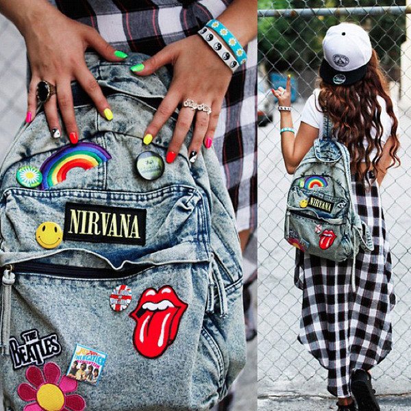 - рюкзачок из джинсы может расшиваться разноцветными нитями, содержать портретные, мультяшные рисунки.