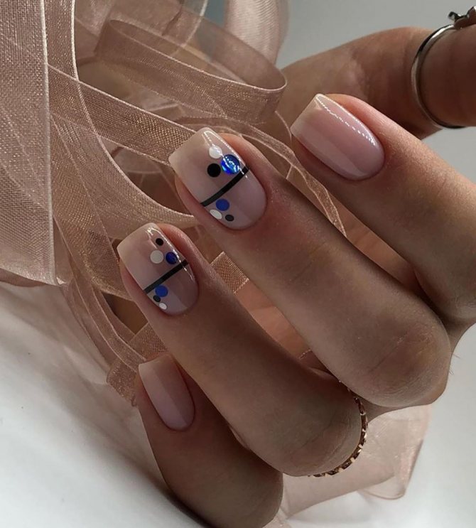 Для длинных ногтей подходит не сильно выраженный дизайн. Даже горошек смотрится очень эффектно.