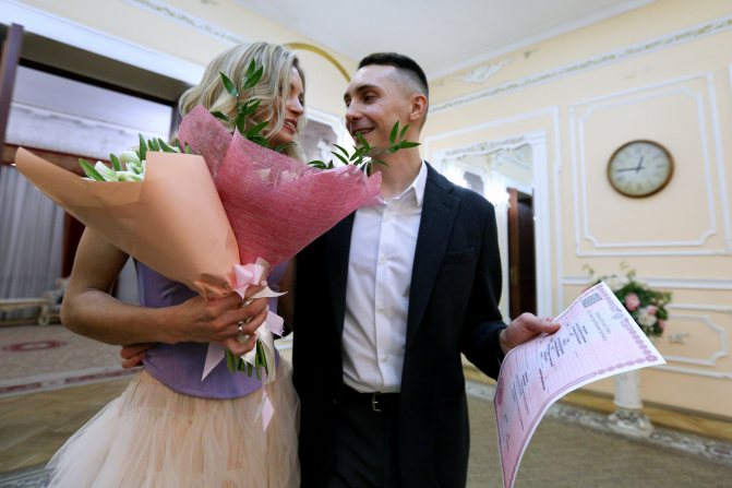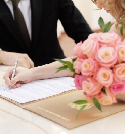 При стандартной процедуре регистрации будущим молодоженам нужно написать заявление, оплатить госпошлину и предъявить их сотруднику ЗАГСа.