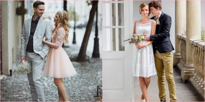 - Отсутствие регламентов. Жених и невеста могут прийти в любой одежде, без цветов, колец и других свадебных аксессуаров.