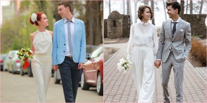 - Классический костюм. Не все женихи хотят надевать костюм ради неторжественной регистрации. Но если потом будет романтическая фотосессия, вполне можно принарядиться. Главное, чтобы это сочеталось с платьем невесты.