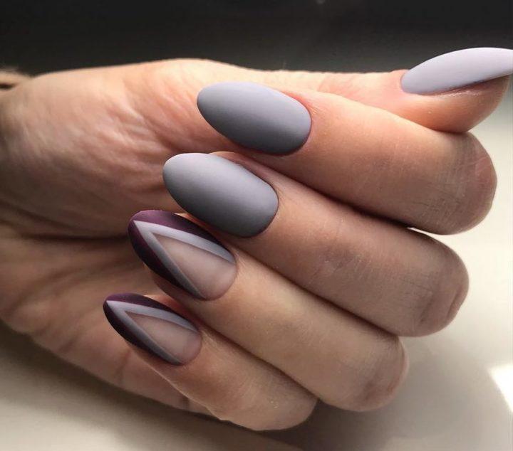 Редко серый цвет мастера делают однотонным. В основном подбираются подходящие друг к другу оттенки серого, где один чуть светлее, а другой темнее. Не редко серый комбинируют с розовым тоном, голубым, бежевым и темно-зеленым. Такие оттенки прекрасно гармонируют с серым цветом, создавая по-настоящему шикарный и стильный маникюр.