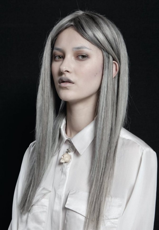 - Серый. Самый капризный оттенок среди всей палитры пепельного. Подходит девушкам с исключительно светлой чистой кожей и яркими глазами. При этом необходимо полное отсутствие высыпаний и покраснений. В противном случае сырые волосы подчеркнут все несовершенства. Легче добиться данного оттенка на русых от природы локонах, которые не имеют рыжих отливов.