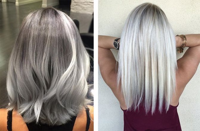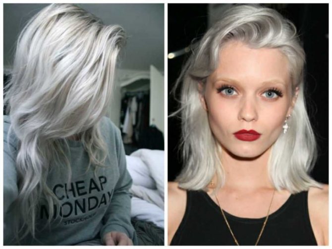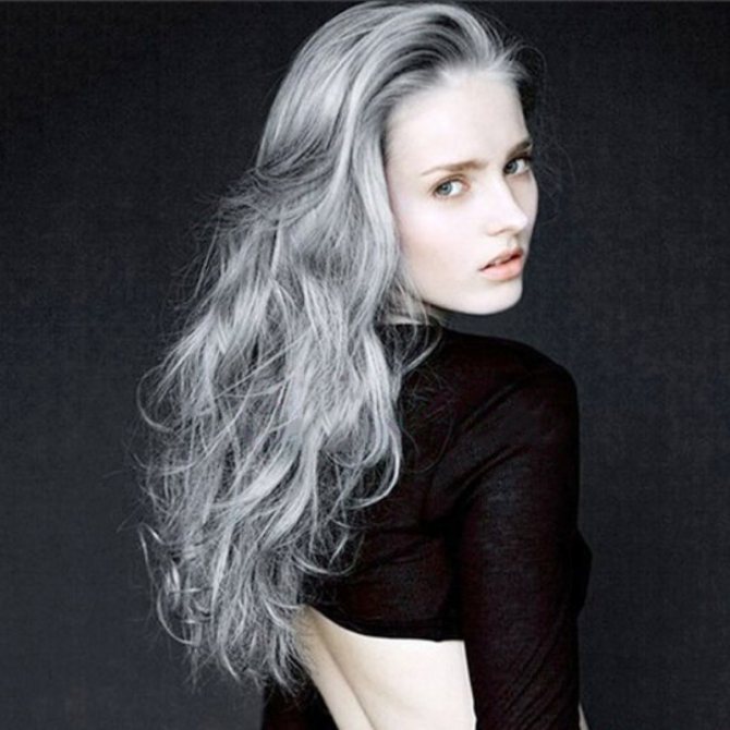 - Серебристый. Имеет небольшой отлив в голубой. Цвет выглядит очень неестественно. Поэтому его необходимо подчеркивать броским макияжем или яркой одеждой.