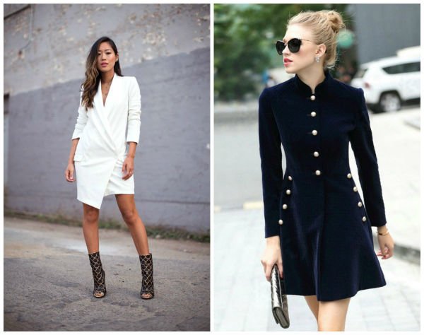 Современные модные тенденции предлагают носить платье-пиджак или платье-пальто, как в качестве платья, так и в качестве верхней одежды – смотрятся они одинаково хорошо и привлекательно. Поэтому, порой сложно отличить то ли это платье, то ли элемент верхней одежды, но в любом случае образы получаются великолепными.