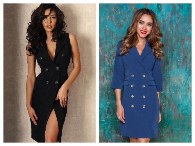 Внешне данная модель платья безумно сильно напоминает женский пиджак, жакет или блейзер, от чего и произошло название этой модельки. Альтернативные вариации модных платьиц в этом сегменте – платья-пальто и платья-тренч, которые могут быть более длинными или плотными по материалу.