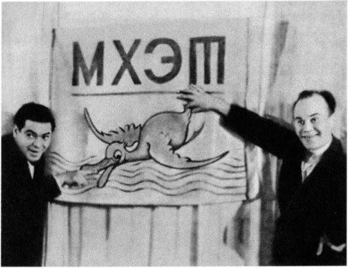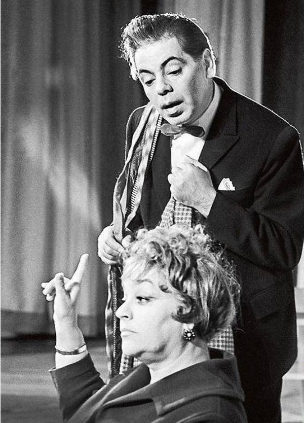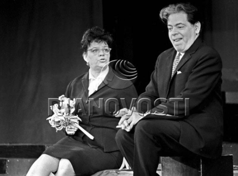 Аркадий Исаакович Райкин и Руфь Марковна Иоффе в интермедии Темное дело Ленинградского театра миниатюр.