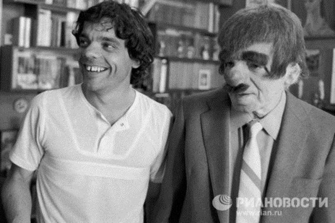 Аркадий Райкин с сыном Константином Райкиным. 1987 год.