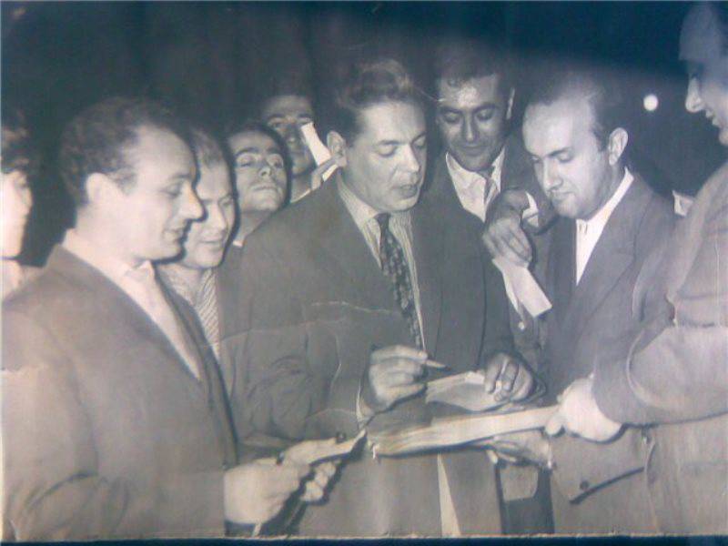 Первая гастрольная поездка.А.И.Райкин рядом с директором Театра эстрады И.М.Гершманом.Одесса. 1939 год