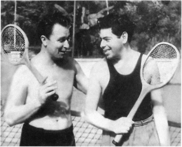 На теннисном корте с Л. С. Маслюковым. Сочи. 1949г