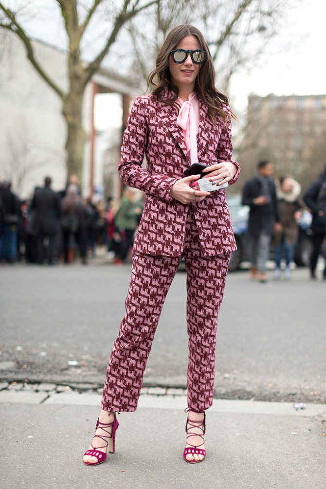Очень-очень редко можно встретить костюм с крупным рисунком, который не будет похож на обивку кресла. Поэтому, если вы не уверены, не надевайте. Лучше надеть что-то простенькое и показаться обычным, чем разрядиться в пух и прах и выглядеть нелепо.
