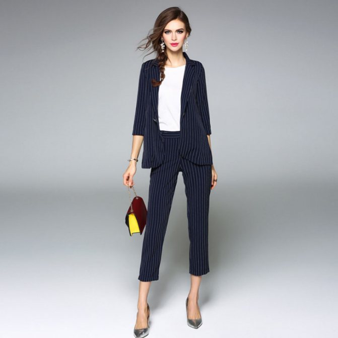 Совет! Для высокого дресс-кода следует приобрести единый гарнитур, а не составлять его самой из нескольких разных вещей. Вещи должны максимально гармонировать друг с другом, даже по принципу контраста материалов или цветов.