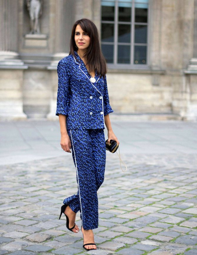 - Пижамный стиль. Расслабленный и богемный, он пленил сердца миллионов девушек по всему миру. Смело сочетайте шёлковые и атласные «пижамы» с контрастной окантовкой вместе с босоножками на высокой шпильке и яркими цветовыми акцентами в макияже. Обратите внимание на «пижамы» Kenzo.