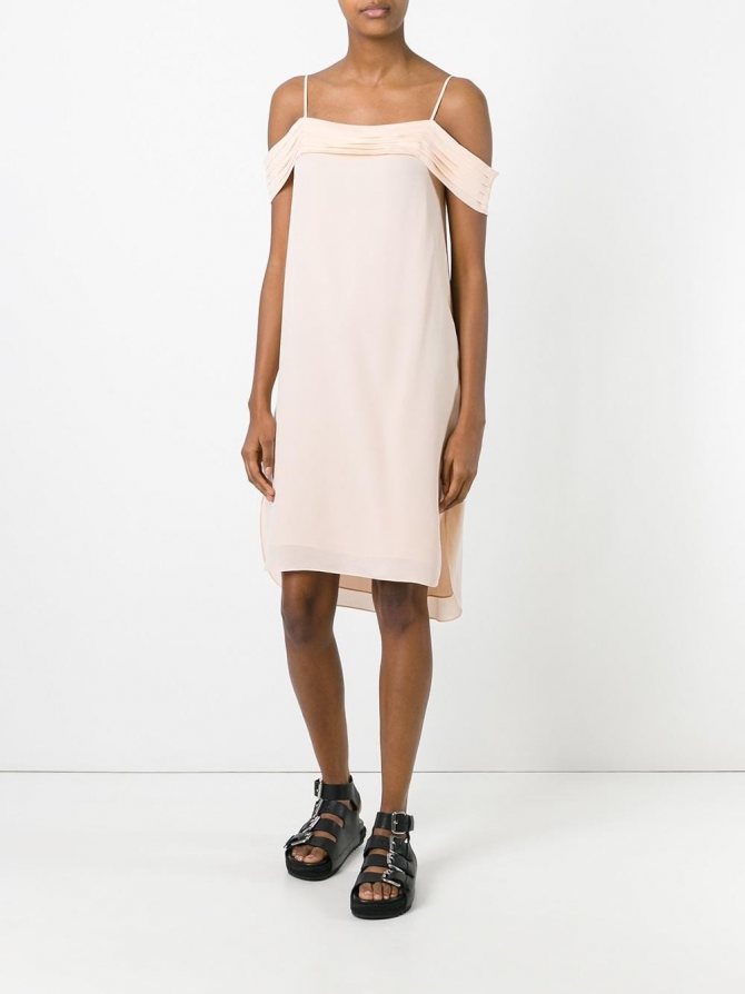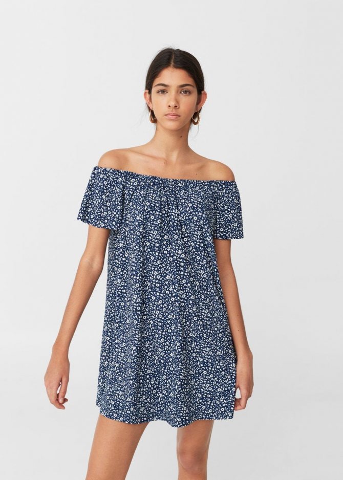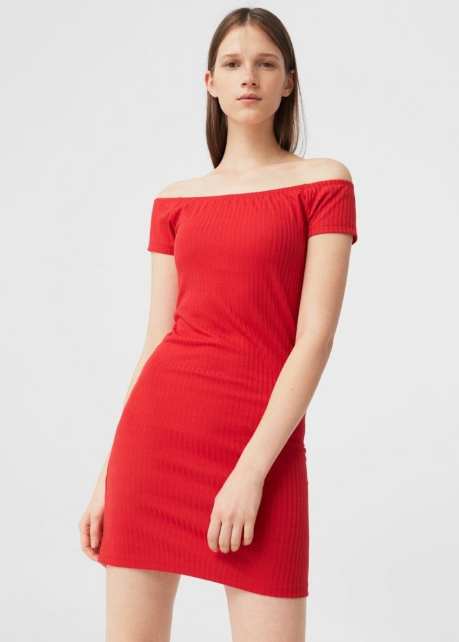 - Платье с обнаженными плечами.