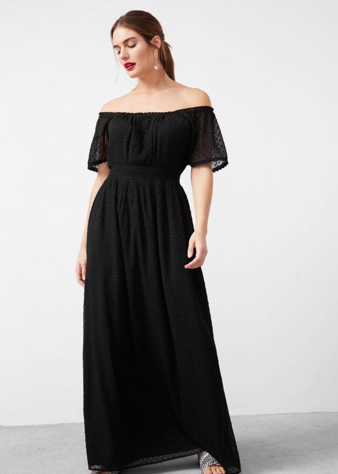 Выбор длины зависит лишь от ваших личных предпочтений. Дамам с полноватой фигурой дизайнеры рекомендуют надевать более спокойные и строгие фасоны с юбкой миди. Макси традиционно подойдет всем модницам, чей рост приближается к 170 см, поскольку юбка полностью скрывает ноги, подчеркивая их длину.