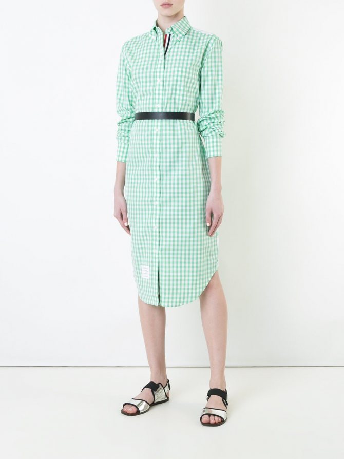 Платье, по крою напоминающее рубашку – один из самых модных фасонов. Такое платье может быть, как в неформальном, так и в деловом стиле, главное – подобрать правильный вариант для каждого случая. Модные платья рубашки украшаются поясом, некоторые модели имеют декор из рюшей в верхней части, также, актуальны модели с принтом в клетку-гленчек.