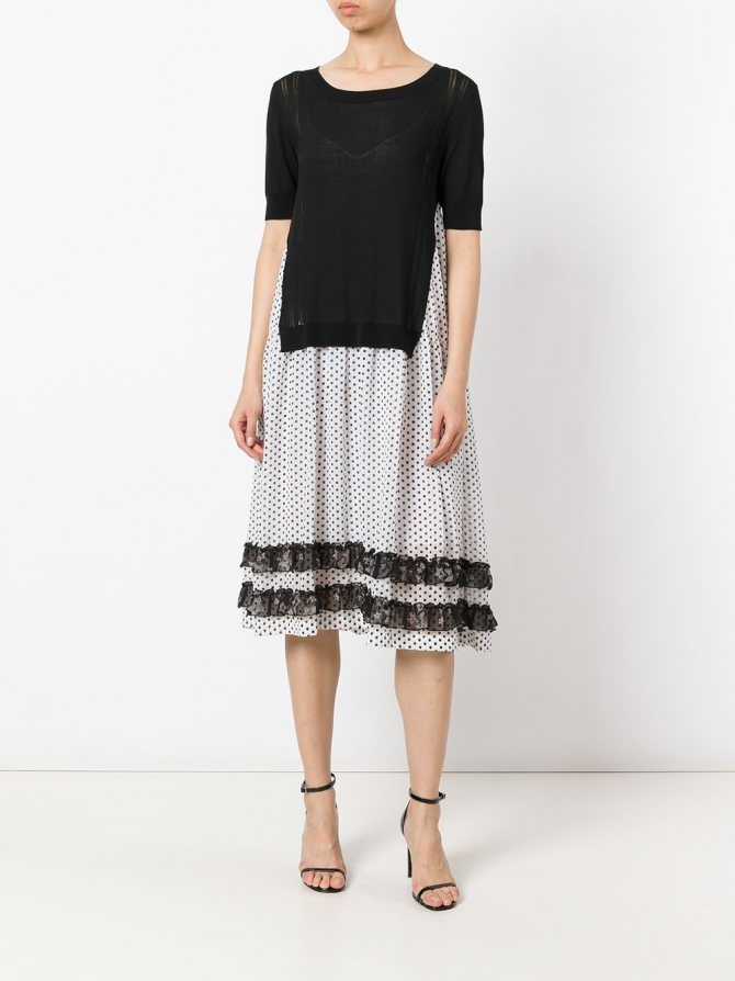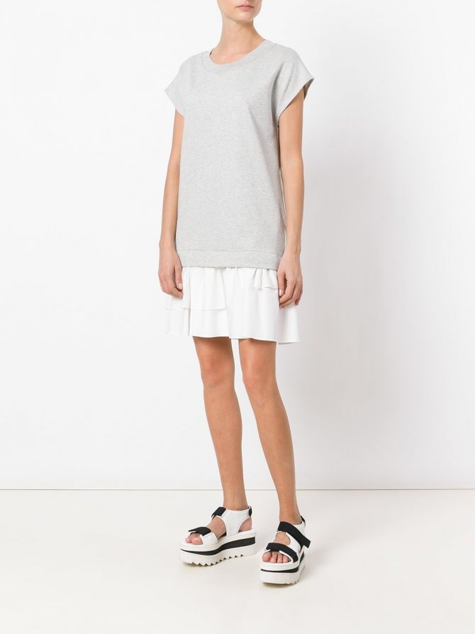 В моде сарафаны с оборками и воланами, под которые нужно надевать белые футболки или однотонные футболки-поло.