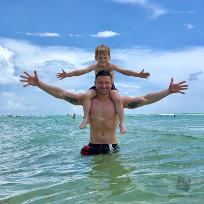 Сергей Лазарев и сын Никита купаются в океане, июнь 2021 г.