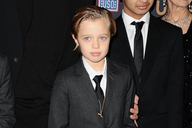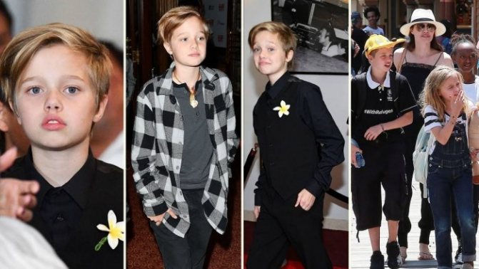 - В 2010 году Шайло и вовсе заявила, что хочет стать мальчиком и просить назвать ее Джоном. Такое заявление дочери заставило родителей обратиться к специалисту, который убедил пару не торопиться с выводами, т.к. к подростковому возрасту все может измениться. Странная манера одеваться может быть вызвана недостатком внимания со стороны родителей, которые большинство своего времени проводят на съемочных площадках или в путешествиях. К тому же девочка больше общается со своими братьями, что также могло повлиять на стиль и манеру поведения Шайло.