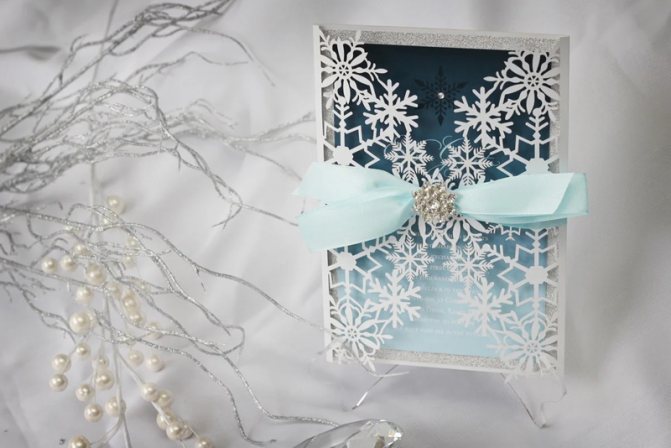 Но вот несколько интересных задумок, как оформить и украсить приглашения на свадьбу зимой: