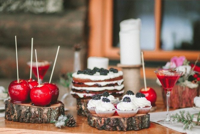 Зимнее свадебное меню и торт
