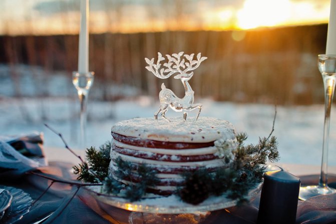 Когда как не зимой можно отказаться от традиционных жениха и невесты на вершине свадебного торта в пользу симпатичной парочки оленей или сов? Шишки, снежинки и засахаренные, будто припорошенные снегом фрукты тоже подойдут для холодного времени года.
