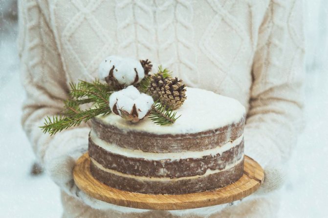 Шишками можно украсить и свадебный торт. Стоит также помнить, что использование шишек несет в себе определенную стилистику, которую надо непременно учесть – это более простой рустик, изящный кантри-шик или стильный эко-вариант.