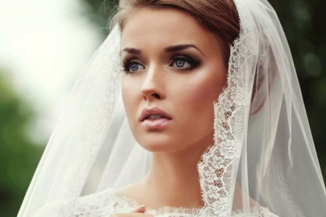 С яркостью следует быть аккуратной. Сам макияж не должен быть вечерним или клубным. Такой вариант допустим, только если платье невесты не традиционное, а напоминает наряд на вечеринку, а само торжество будет проходить в соответствующей обстановке. К тому же, подобные образы вовсе не идут голубоглазым, уничтожая их природные достоинства. Лучше воспользоваться чем-то более нежным. Неброские тона подчёркивают макияж для невесты с голубыми глазами, фото это демонстрируют.