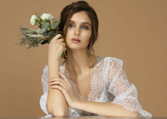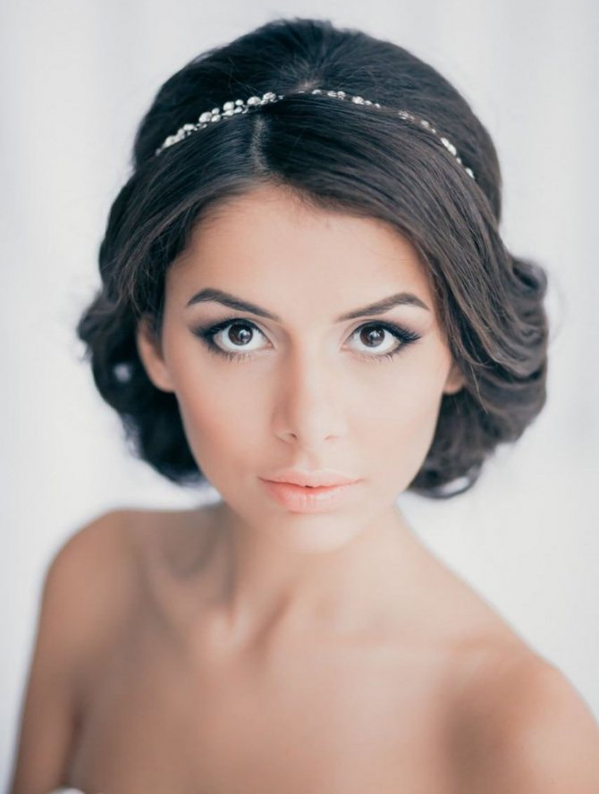 Традиционно считается, что для макияжа брюнеток лучше использовать яркие насыщенные цвета – и в этом есть доля истины. Однако свадьба – не танцевальный клуб, и выглядеть в эти моменты любой девушке хочется нежно и женственно, при этом важно подчеркнуть глаза и губы, чтобы в сочетании с темными волосами лицо не выглядело слишком блеклым.