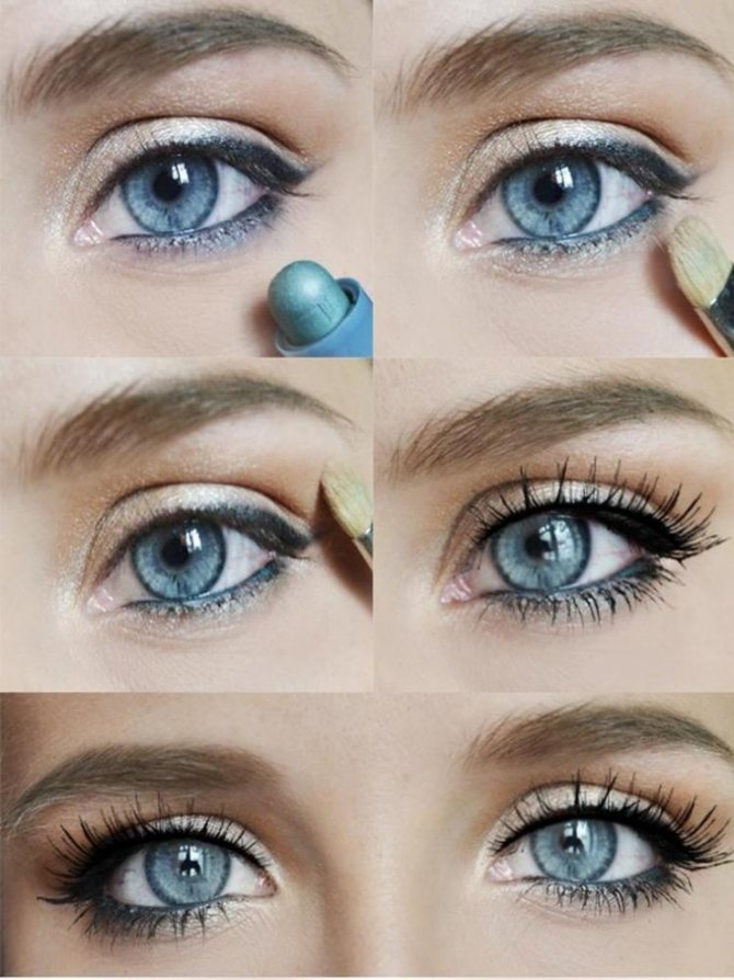 Для начала следует определиться с основной палитрой. Следует всегда придерживаться принципа «никаких тёмных оттенков». Они подойдут только кареглазым. Чёрная подводка и тушь будут смотреться неестественным тёмным пятном, визуально уменьшая глаза.