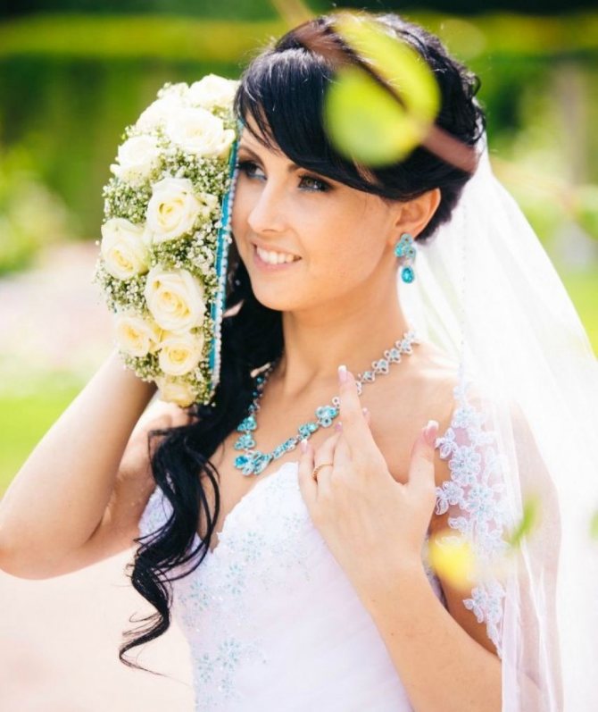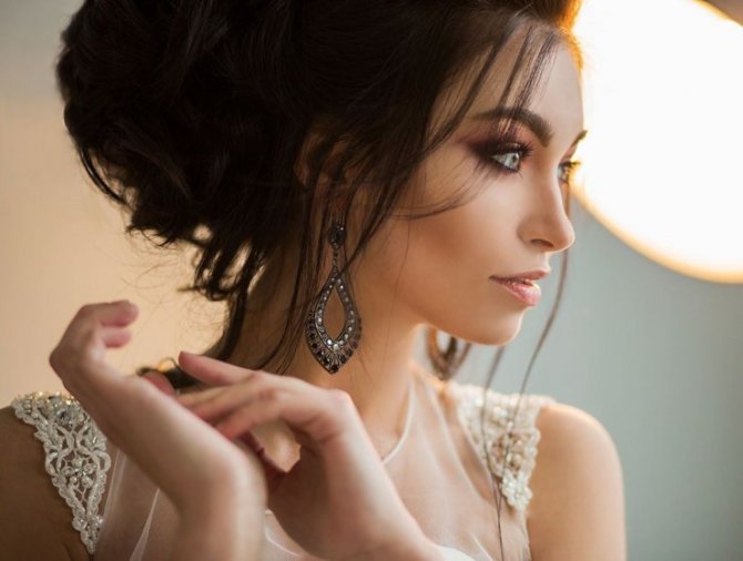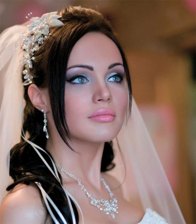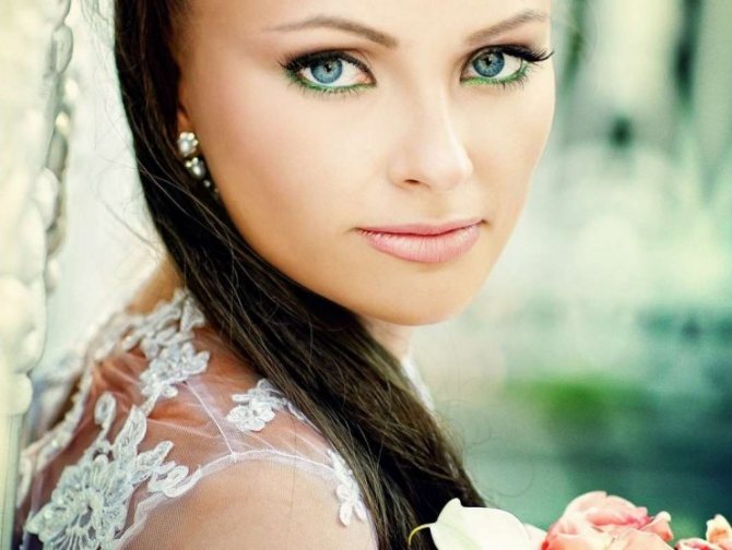 - Мейкап на свадьбу для брюнеток с голубыми и зелеными глазами