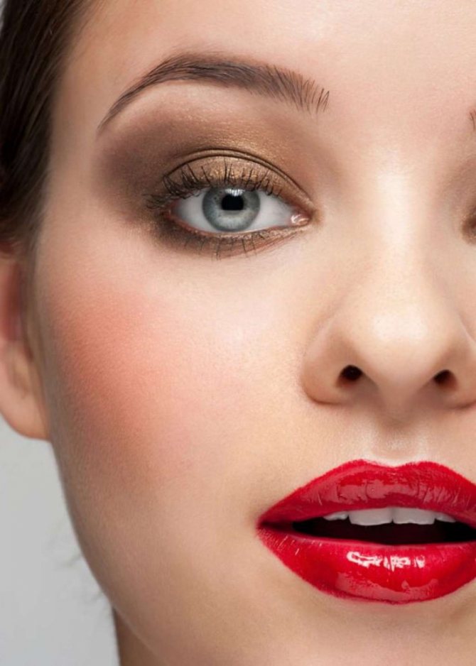 Для яркого макияжа подходит нежно-розовый или коралловый тон блеска или помады, также актуален цвет фуксия. Для более естественного макияжа подходит нежно розовая или бежевая помада.