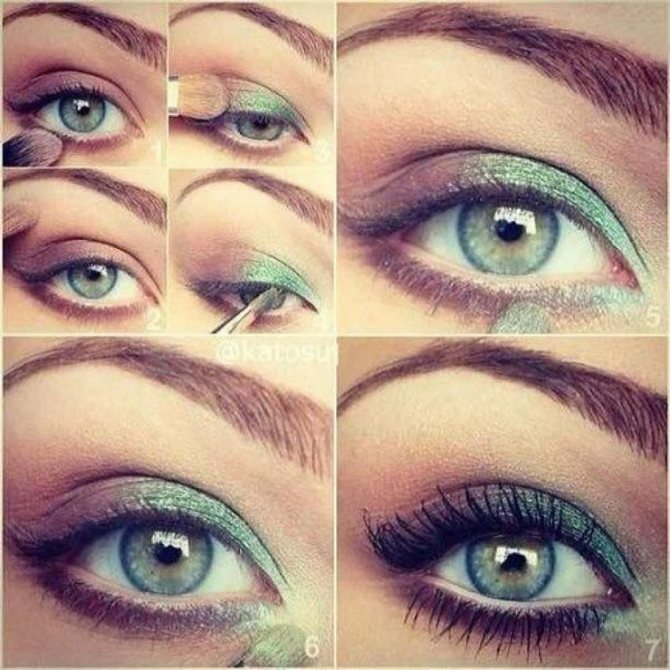 К зеленым глазам идеально подходят тени болотного цвета, серого, мятного.