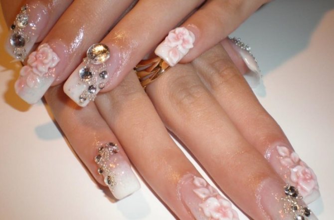 Дизайн ногтей на свадьбу — использование акрила и геля, страз и кружева + фото