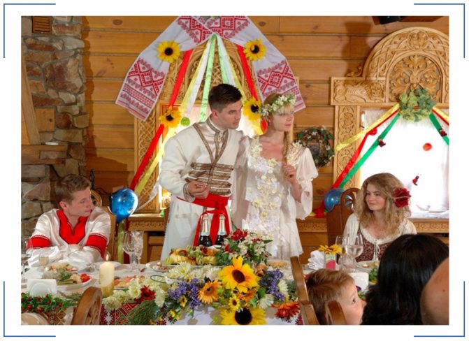 ♦ По свадебной традиции с тех пор мало что изменилось. По порядку – сватовство, приданое, девичник, выкуп, благословение родительское и застолье.