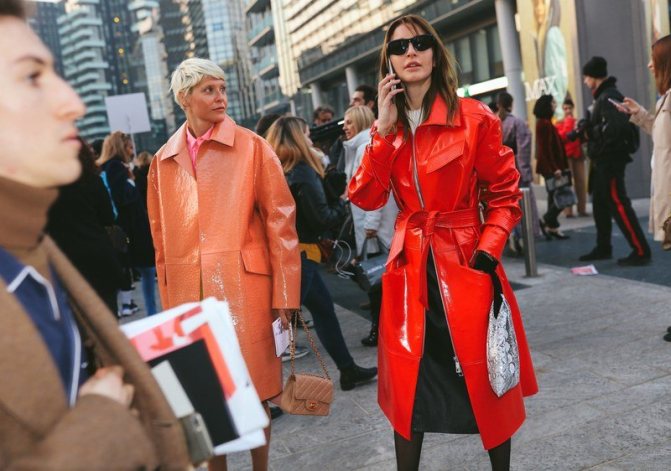 Порадуют многих женщин в осеннем сезоне 2021 обилие вариантов женского пальто от известных брендов из кожа. Прямые фасоны и с приталенным силуэтом, украшенные мехом – моделей много. Обратите внимание на модную цветовую гамму такой верхней одежды, а именно велосипедный красный тон и пряно-красно чили, галактический и вечерний синий, обилие оранжевых оттенков (темный чеддер, сахарный миндаль) и нежные розовые тона (крем депеш, фруктовый голубь).