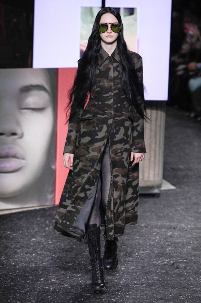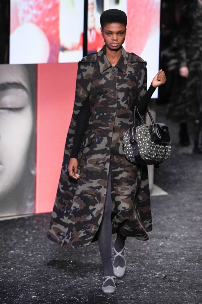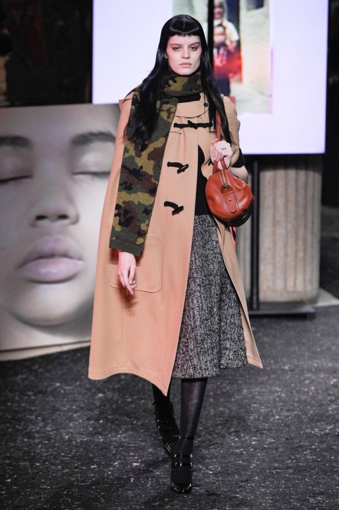 Вязаное пальто – еще одна альтернатива осеннего убора. Часто в показах встречаются комбинации пальтовых тканей с вязаными деталями. Характерными особенностями таких уборов стали контрастные орнаменты и выпуклые узоры.